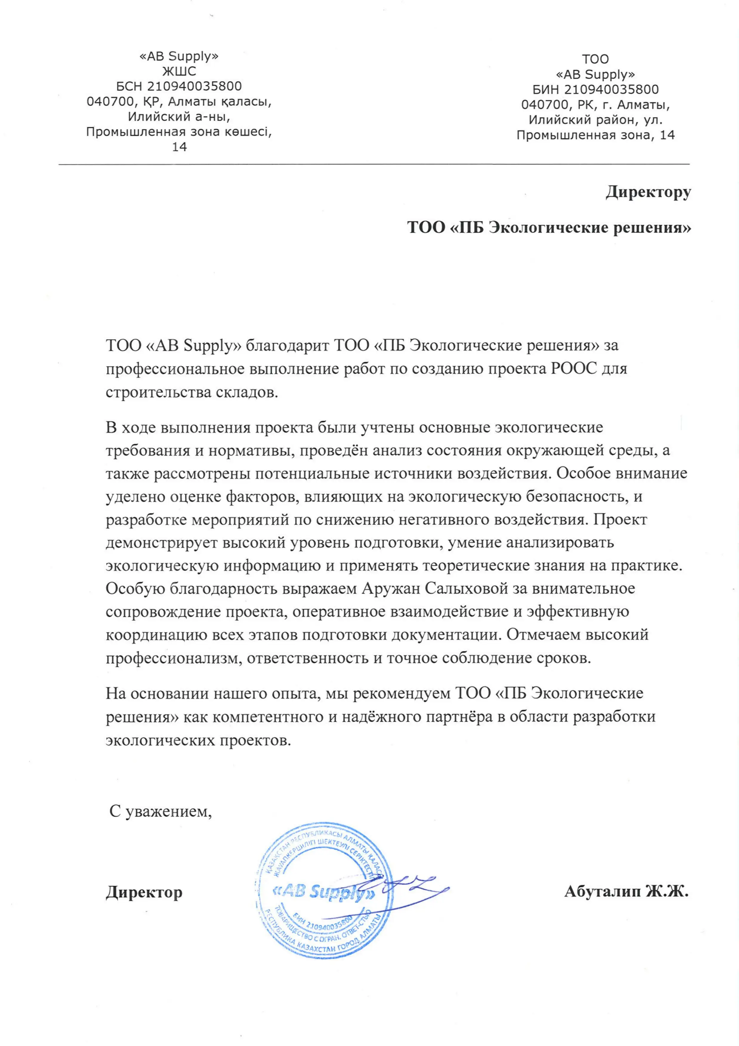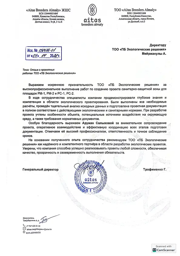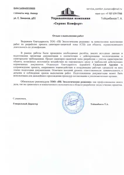 Отзывы о сотрудничестве с компанией - Проектное Бюро Экологические решения